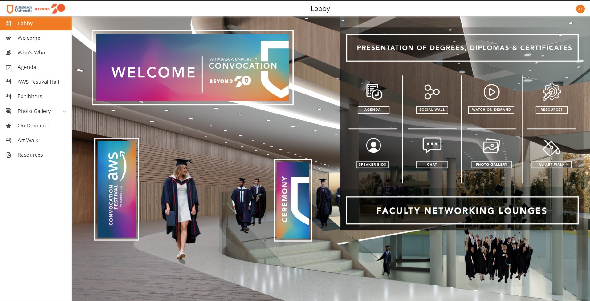 Athabasca University was looking to reimagine their convocation in response to the COVID-19 pandemic. In addition to planning an engaging virtual celebration for students and their families, the university was celebrating their 50th anniversary and looking for creative ways to commemorate this occasion as well. As such, they were looking for a partner who could provide creative, production and virtual event support on several large ancillary events surrounding the graduation.