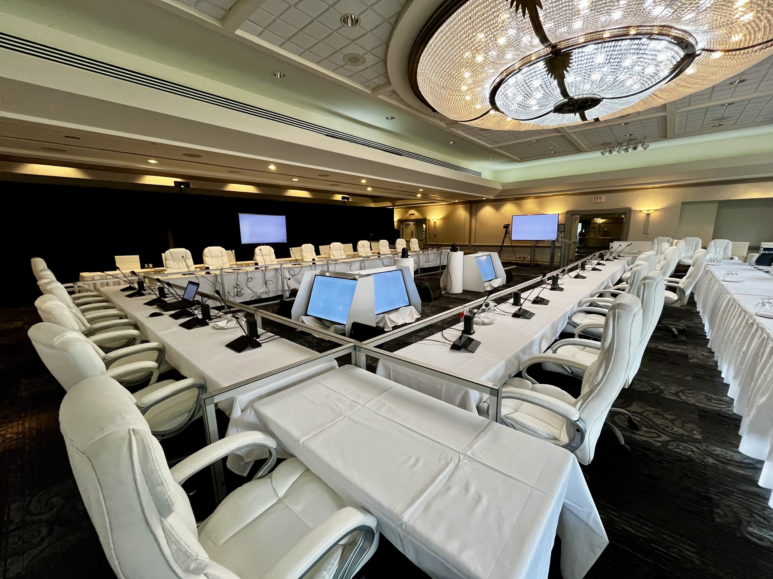 En tant que partenaire événementiel de confiance du ministère des Finances du Canada, et avec son expérience éprouvée dans la mise en œuvre de solutions pour rassemblements de haut niveau au Canada, Encore a traduit la vision du Ministère des Finances du Canada en un événement d’une élégance moderne. Inspiré par les sommets précédents du G7/G20, des paysages canadiens et d’un design plus minimaliste, chaque détail, de la scène modulaire à un affichage de marque discret, a été conçu en vue de garantir une expérience confortable, appropriée et mémorable. Le bon déroulement de l’événement grâce à notre équipe, ainsi que notre capacité à nous adapter rapidement sur place, ont permis de créer un environnement dans lequel les délégués ont pu mener efficacement leurs activités.