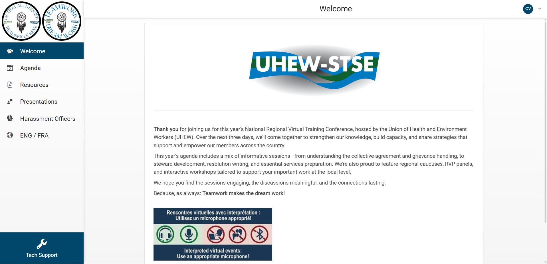 Encore a accueilli l’équipe du STSE dans ses bureaux d’Ottawa, où la scène de présentation a été aménagée en studio de diffusion dédié pour retransmettre en direct les trois jours de l’événement à 110 représentants élus du STSE. L’espace a été adapté pour accueillir une scène fonctionnelle équipée d’un podium et de bannières personnalisés, qui ont servi de point central à la salle virtuelle principale tout au long du programme. De plus, un site Chime Go bilingue et personnalisé a été créé avec une connexion centralisée et un référentiel de documents, offrant un espace consolidé pour les ordres du jour, les documents de référence et autres ressources essentielles. L’équipe Encore est fière de son partenariat avec le STSE et continue de capitaliser sur les succès obtenus jusqu’à présent grâce à un respect mutuel et à un service de première classe.